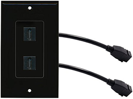 RiteAV (1 Gang Decorative) 2 HDMI Black Wall Plate w/ Pigtail Extension Cable Black