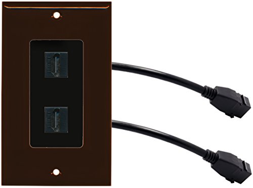 RiteAV (1 Gang Decorative) 2 HDMI Black Wall Plate w/ Pigtail Extension Cable Brown (Black Insert)
