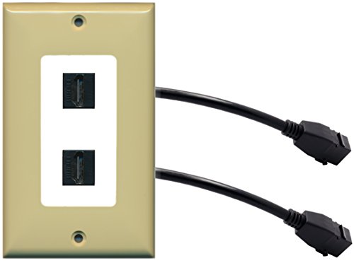 RiteAV (1 Gang Decorative) 2 HDMI Black Wall Plate w/ Pigtail Extension Cable Ivory on White