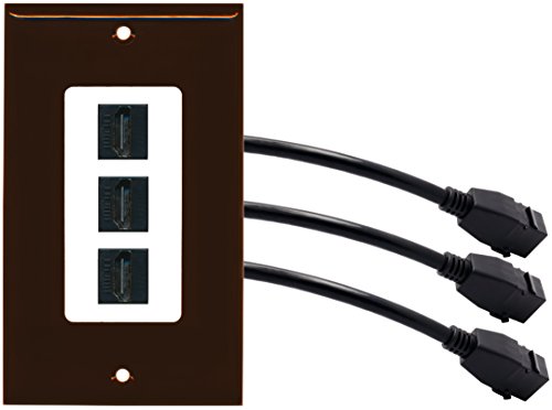RiteAV (1 Gang Decorative) 3 HDMI Black Wall Plate w/ Pigtail Extension Cable Brown on White