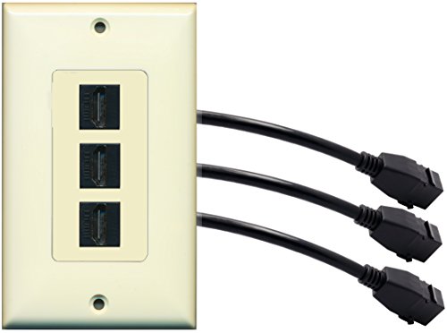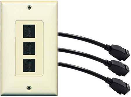 RiteAV (1 Gang Decorative) 3 HDMI Black Wall Plate w/ Pigtail Extension Cable Light Almond