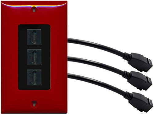 RiteAV (1 Gang Decorative) 3 HDMI Black Wall Plate w/ Pigtail Extension Cable Red (Black Insert)