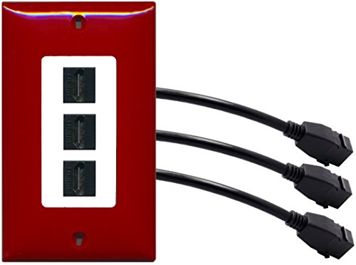 RiteAV (1 Gang Decorative) 3 HDMI Black Wall Plate w/ Pigtail Extension Cable Red on White