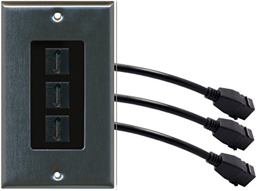 RiteAV (1 Gang Decorative) 3 HDMI Black Wall Plate w/ Pigtail Extension Cable Stainless (Black Insert)