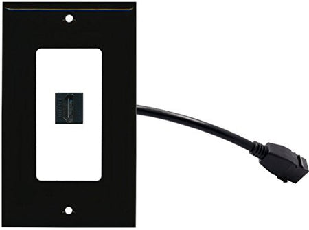RiteAV (1 Gang Decorative) HDMI Wall Plate w/ Pigtail Extension Cable Black on White
