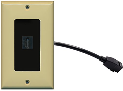 RiteAV (1 Gang Decorative) HDMI Wall Plate w/ Pigtail Extension Cable Ivory (Black Insert)