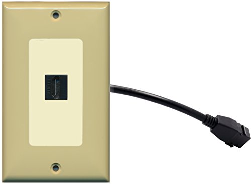 RiteAV (1 Gang Decorative) HDMI Wall Plate w/ Pigtail Extension Cable Ivory (Lt. Almond Insert)