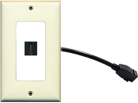 RiteAV (1 Gang Decorative) HDMI Wall Plate w/ Pigtail Extension Cable Light Almond on White