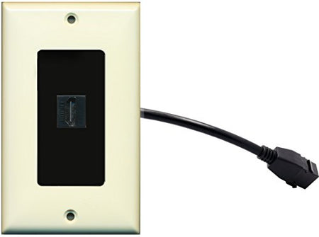 RiteAV (1 Gang Decorative) HDMI Wall Plate w/ Pigtail Extension Cable Lt. Almond (Black Insert)