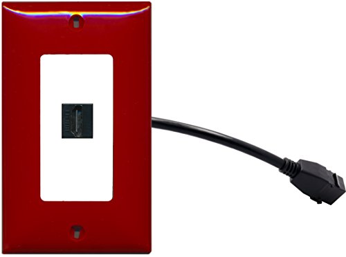 RiteAV (1 Gang Decorative) HDMI Wall Plate w/ Pigtail Extension Cable Red on White
