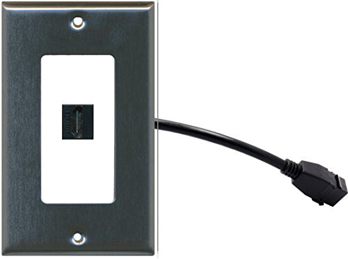 RiteAV (1 Gang Decorative) HDMI Wall Plate w/ Pigtail Extension Cable Stainless Steel on White