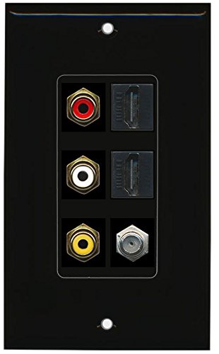 RiteAV - (1 Gang Decorative) Rca Composite (Black) 2 Hdmi Coax Black Wall Plate