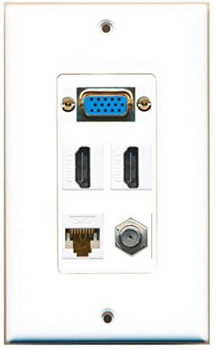 RiteAV (1 Gang Decorative) Svga 2 HDMI Coax Cat6 White Wall Plate White