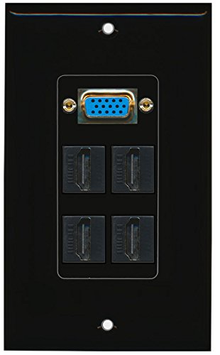 RiteAV (1 Gang Decorative) Svga 4 HDMI Black Wall Plate Black