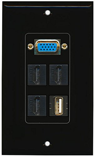 RiteAV (1 Gang Decorative) Svga USB A-A (Black) 3 HDMI Black Wall Plate Black
