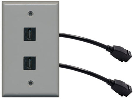 RiteAV (1 Gang Flat) 2 HDMI Black Wall Plate w/ Pigtail Extension Cable Gray