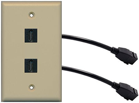 RiteAV (1 Gang Flat) 2 HDMI Black Wall Plate w/ Pigtail Extension Cable Ivory