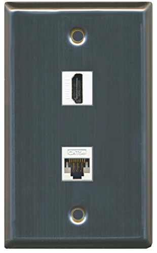 RiteAV (1 Gang Flat) HDMI Cat5e White Wall Plate Stainless Steel