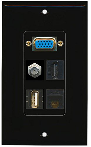 RiteAV - (1 Gang) SVGA USB A-A HDMI Black Coax Black Cat6 Black Wall Plate 1 Gang Black