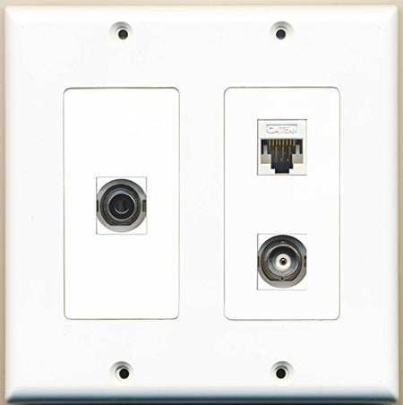 RiteAV - 1 Port 3.5mm 1 Port BNC 1 Port Cat5e Ethernet White - 2 Gang Wall Plate