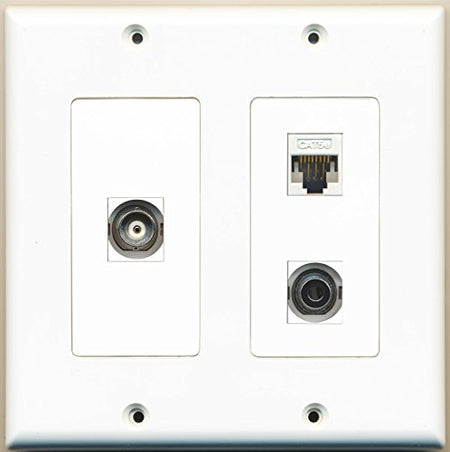 RiteAV - 1 Port 3.5mm 1 Port BNC 1 Port Cat5e Ethernet White - 2 Gang Wall Plate