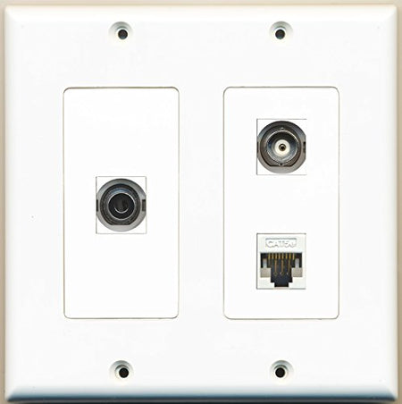 RiteAV - 1 Port 3.5mm 1 Port BNC 1 Port Cat5e Ethernet White - 2 Gang Wall Plate