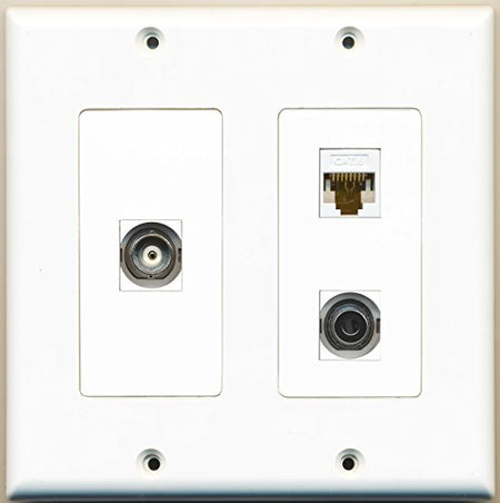 RiteAV - 1 Port 3.5mm 1 Port BNC 1 Port Cat6 Ethernet White - 2 Gang Wall Plate