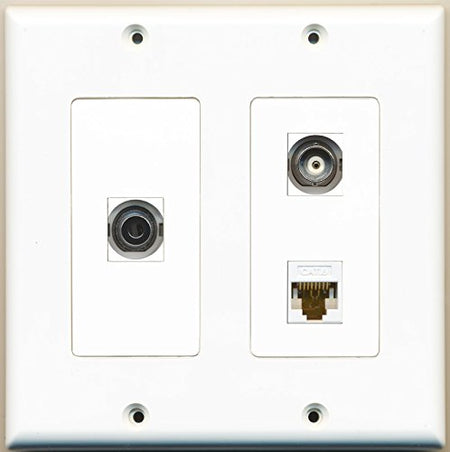 RiteAV - 1 Port 3.5mm 1 Port BNC 1 Port Cat6 Ethernet White - 2 Gang Wall Plate