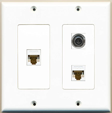 RiteAV - 1 Port 3.5mm 2 Port Cat6 Ethernet White - 2 Gang Wall Plate