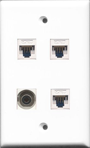 RiteAV - 1 Port 3.5mm 3 Port Cat5e Ethernet White Wall Plate