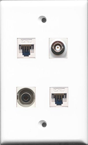 RiteAV - 1 Port 3.5mm and 1 Port BNC 2 Port Cat5e Ethernet White Wall Plate