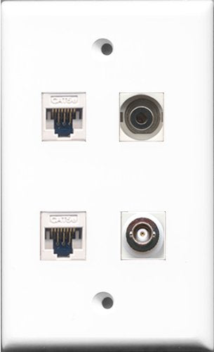 RiteAV - 1 Port 3.5mm and 1 Port BNC 2 Port Cat5e Ethernet White Wall Plate