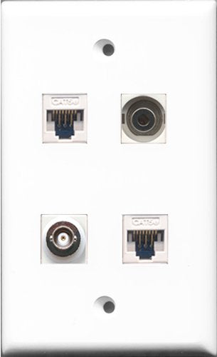 RiteAV - 1 Port 3.5mm and 1 Port BNC 2 Port Cat5e Ethernet White Wall Plate