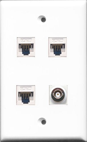 RiteAV - 1 Port BNC 3 Port Cat5e Ethernet White Wall Plate