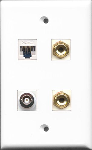 RiteAV - 1 Port BNC and 1 Port Cat5e Ethernet White 2 Port Banana Speaker Wall Plate