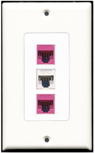 RiteAV - 1 Port Cat5e Ethernet White 2 Port Cat5e Ethernet Pink Wall Plate Decorative