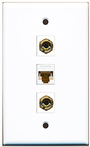RiteAV - 1 Port Cat6 Ethernet White 2 Port Banana Speaker Wall Plate