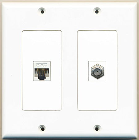 RiteAV - 1 Port Coax Cable TV- F-Type 1 Port Cat5e Ethernet White - Dual Gang Wall Plate