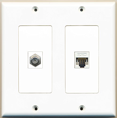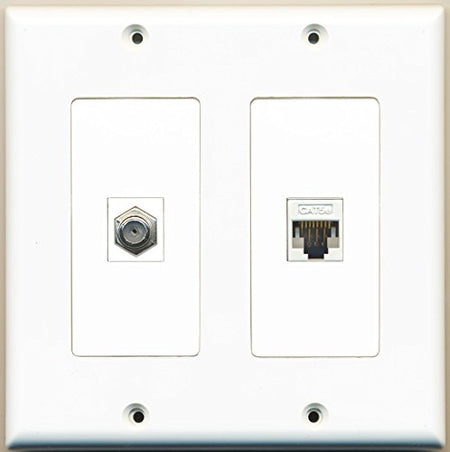 RiteAV - 1 Port Coax Cable TV- F-Type 1 Port Cat5e Ethernet White - Dual Gang Wall Plate