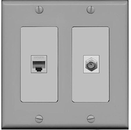 RiteAV - 1 Port Coax Cable TV- F-Type 1 Port Cat6 Ethernet Dual Gang Wall Plate - Gray