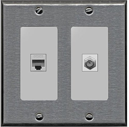 RiteAV - 1 Port Coax Cable TV- F-Type 1 Port Cat6 Ethernet Dual Gang Wall Plate - Stainless Steel/Gray