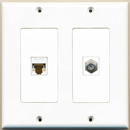 RiteAV - 1 Port Coax Cable TV- F-Type 1 Port Cat6 Ethernet Dual Gang Wall Plate - White