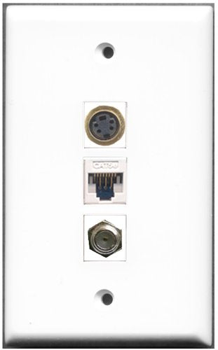 RiteAV - 1 Port Coax Cable TV- F-Type 1 S-Video 1 Cat5e Ethernet White Wall Plate
