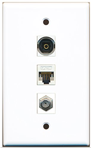 RiteAV - 1 Port Coax Cable TV- F-Type 1 Toslink 1 Cat5e Ethernet White Wall Plate