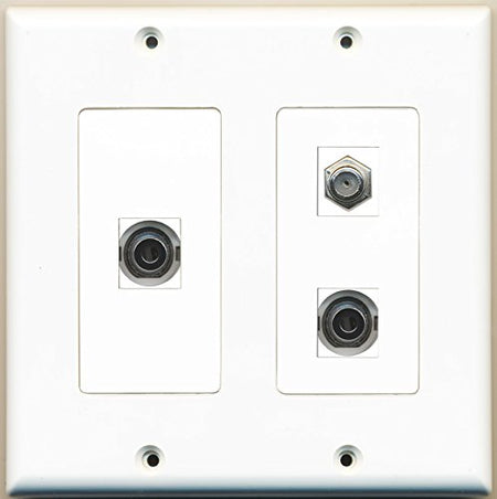 RiteAV - 1 Port Coax Cable TV- F-Type 2 Port 3.5mm - 2 Gang Wall Plate