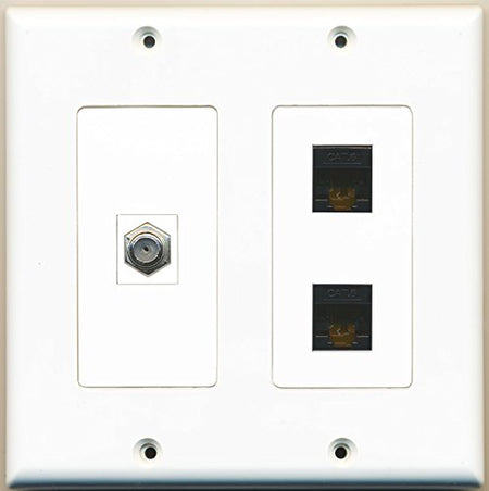 RiteAV - 1 Port Coax Cable TV- F-Type 2 Port Cat6 Ethernet Black - 2 Gang Wall Plate