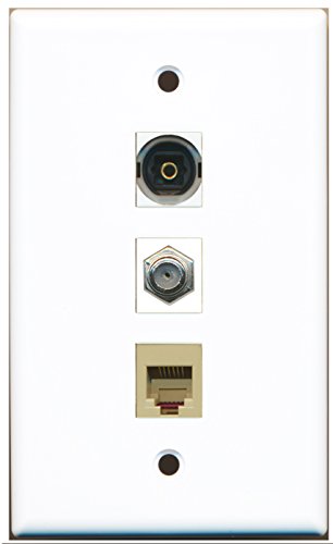 RiteAV - 1 Port Coax Cable TV- F-Type and 1 Port Phone RJ11 RJ12 Beige and 1 Port Toslink Wall Plate