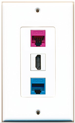 RiteAV - 1 Port HDMI 1 Cat5e Ethernet Blue 1 Cat5e Ethernet Pink Wall Plate Decorative