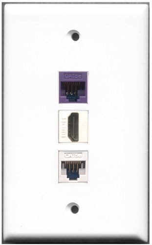 RiteAV - 1 Port HDMI 1 Cat5e Ethernet White 1 Cat5e Ethernet Purple Wall Plate