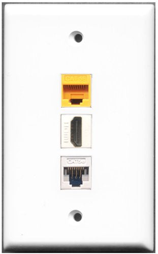 RiteAV - 1 Port HDMI 1 Cat5e Ethernet White 1 Cat5e Ethernet Yellow Wall Plate